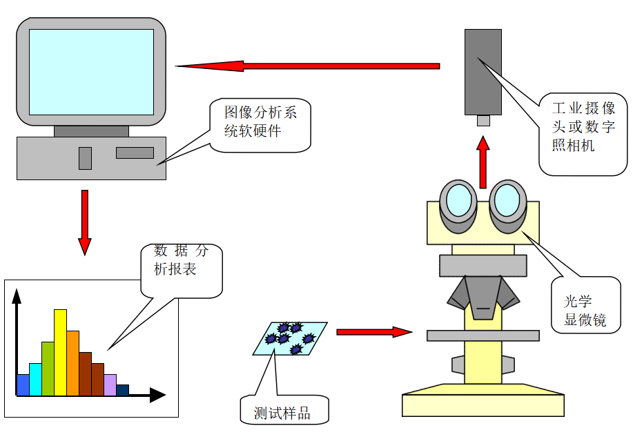 测试原理:本检测仪是将我司研发的专业测试软件和相应的显微镜以及电脑结合起来,组成一个完整的检测系统。通过对样品中的炭黑(或颜料)粒子或粒子团的形态、尺寸、数量测量并统计,根据检测标准的分级依据,对样品的炭黑分散度进行快速分级并形成报告。用户可以据此将炭黑分散度与产品力学性能、抗静电性能、吸湿性能等宏观性能指标建立联系,这将对塑料材料的品质保障、生产工艺、新品研发产生积极影响,同时推进企业产品品质提升。
